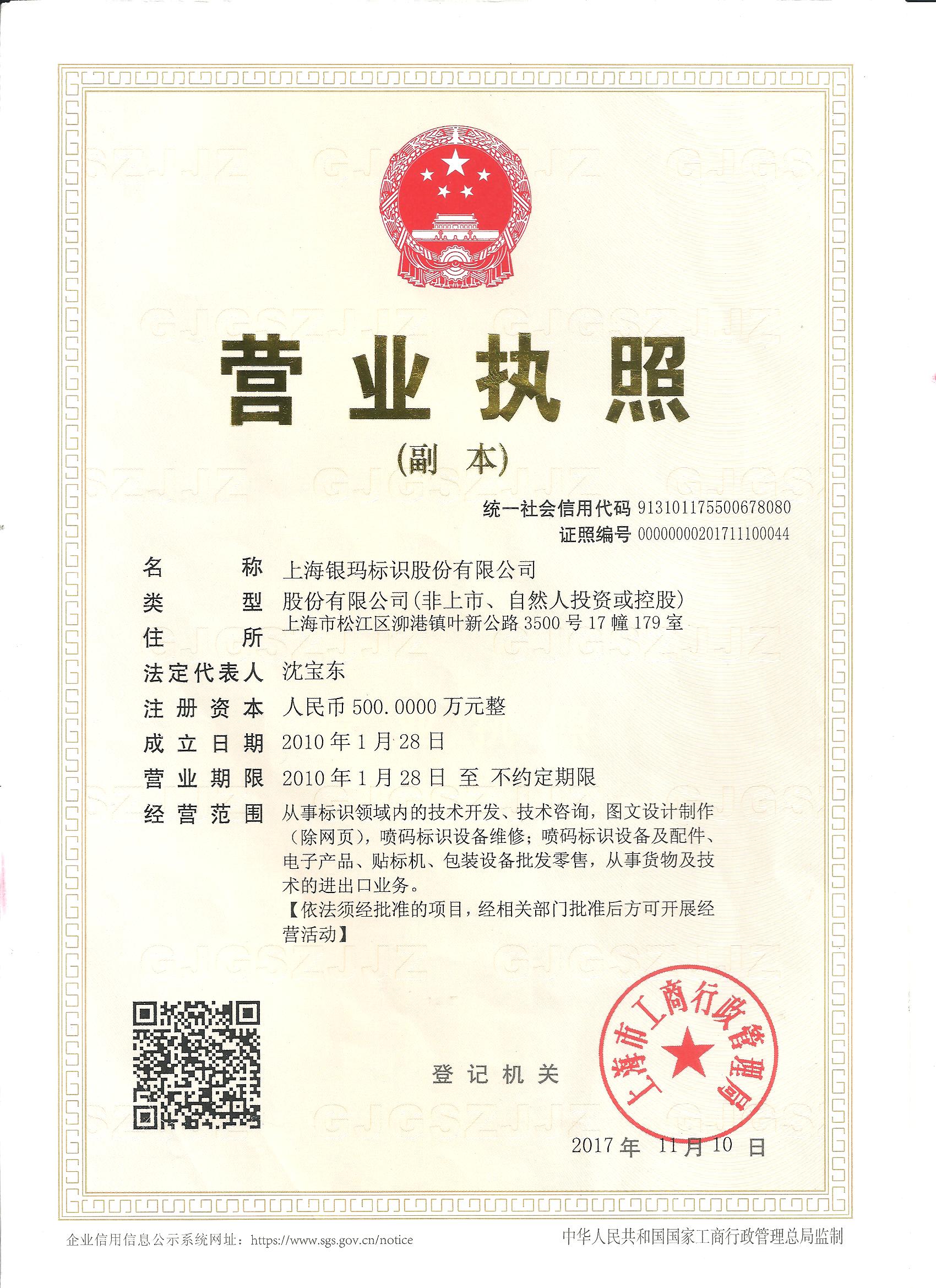 上海銀瑪標識股份有限公司(原名:上海銀瑪標識技術有限公司)成立于2010年元月。是專業從事噴碼標識設備、激光智能標識系統及材料表面賦碼技術等研發設計、推廣應用的企業??蔀橛脩籼峁耙晃镆淮a”技術支持與服務。公司2015年通過ISO9001質量管理體系認證,為上海市科技創新型中小企業,并獲市科技創新基金支持。